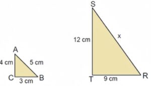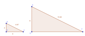 A imagem abaixo mostra dois triângulos equiláteros (triângulos que possuem a mesma medida em todos os lados). Um triângulo é uma ampliação do outro. Sabendo disso, é correto afirmar: