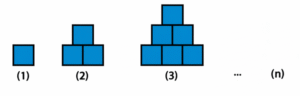 A seguir, temos um conjunto de cubos sobrepostos com arestas congruentes (com mesma medida). Se cada cubo tem $3^2$ $cm^3$ de volume, qual o volume do conjunto todo?